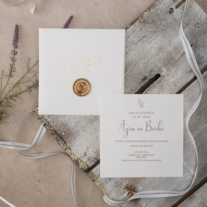 • Davetiye kutulu olarak tasarlanmış olup zarf ve aksesuarları içerisinde bulunmaktadır.