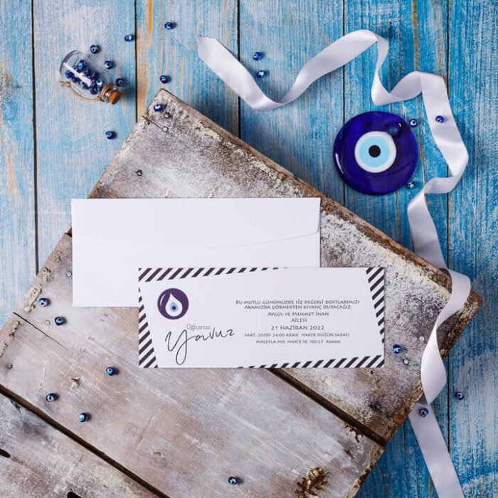 • Davetiye kutulu olarak tasarlanmış olup zarf ve aksesuarları içerisinde bulunmaktadır.